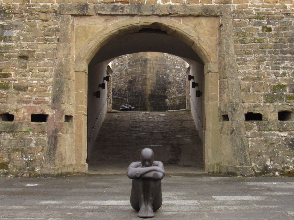 The program for the exhibit explains that the sculptures, placed throughout the Forte, are meant to create “a dialogue between anatomy and architecture.” They are life size and force viewers to think about how we interact with the space around us.